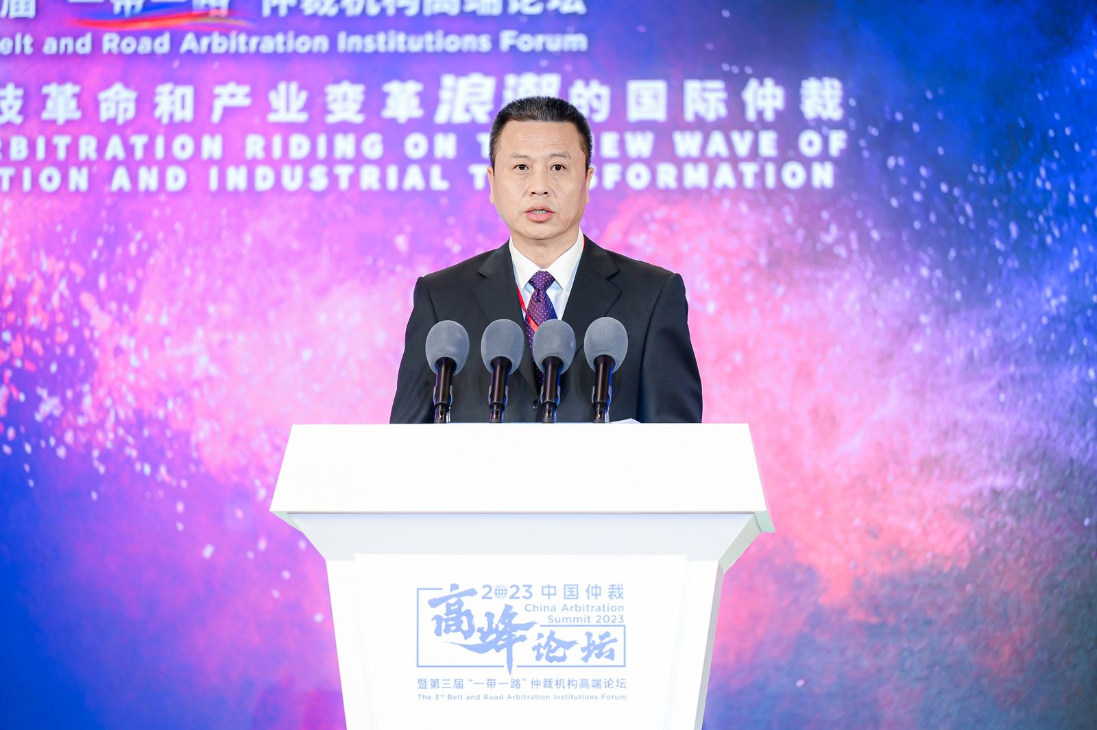 9月6日,2023中国仲裁高峰论坛暨第三届“一带一路”仲裁机构高端论坛在京成功举办。本次论坛由中国国际经济贸易仲裁委员会(CIETAC,简称“贸仲”)与联合国国际贸易法委员会(UNCITRAL,简称“联合国贸法会”)共同主办。中国国际贸易促进委员会副会长、中国国际商会副会长于健龙,联合国贸法会秘书长Anna JOUBIN-BRET女士,最高人民法院审判委员会副部级专职委员、二级大法官刘贵祥出席开幕式并致辞。司法部副部长王振江发表视频致辞。最高人民法院民四庭副庭长张树明发表主旨演讲。司法部公共法律服务管理局一级巡视员孙春英,北京市高级人民法院副院长张雯,以及北京市第四中级人民法院、北京市金融法院、中华全国律师协会等相关领导出席开幕式。贸仲副主任兼秘书长王承杰主持开幕式。