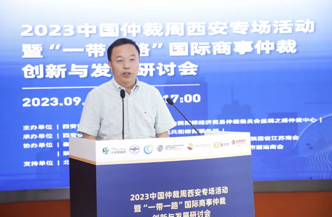 9月8日下午,2023中国仲裁周西安专场活动暨“一带一路”国际商事仲裁创新与发展研讨会成功举办。本次会议由中国国际经济贸易仲裁委员会丝绸之路仲裁中心(简称“贸仲丝路中心”)、西安市贸促会(西安国际商会)主办,西安投资控股有限公司、北京天达共和律师事务所承办,秦商总会、苏陕东西部合作发展促进会、西部企业家商会、陕西省江苏商会、陕西青年创业促进中心、西安市新生代企业家联谊会和西安市潮汕商会协办,北京银行股份有限公司西安分行、西安高科集团有限公司支持举办。西安市贸促会(西安国际商会)副会长张庚元、贸仲丝路中心副秘书长蒋红梅出席会议并致辞,贸仲丝路中心案件经办人余茜主持。